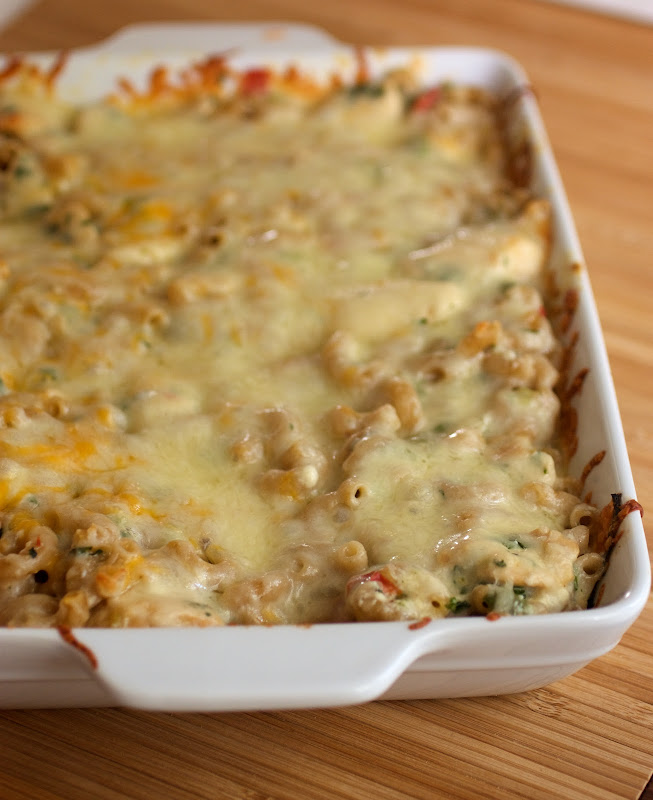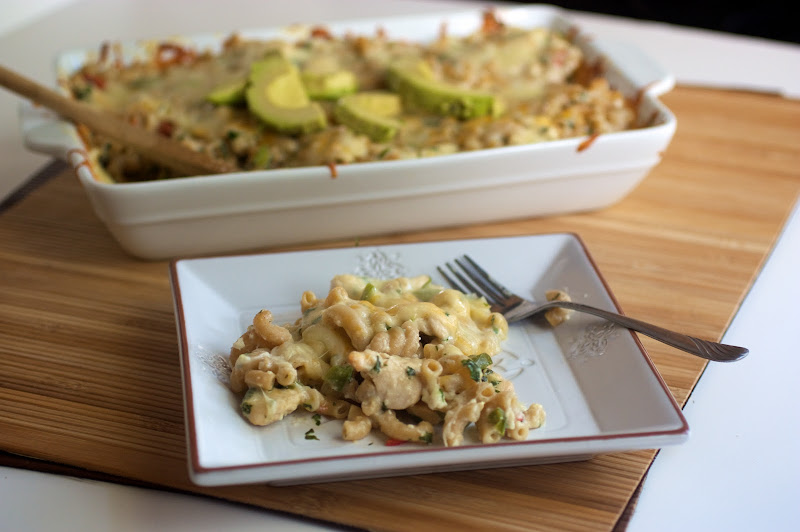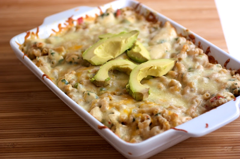 - Mix pasta and veggies together in a 9 x 11 baking dish(or feel free to use whatever baking dish you have around.) Stir in cheese sauce and sprinkle remaining cheese on top. Bake for 20-25 minutes until cheese is bubbly. Remove from oven and top with avocado/cilantro.