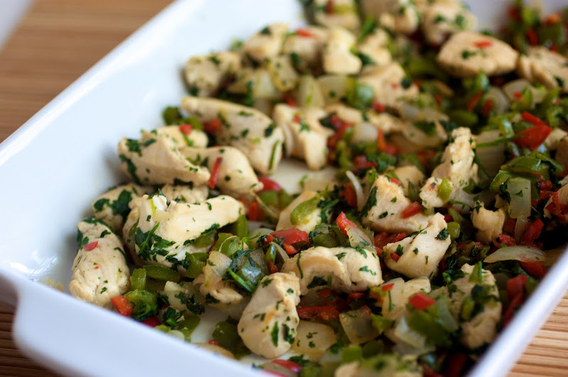 - *You can easily add chicken- dice and cook with the peppers and onions.