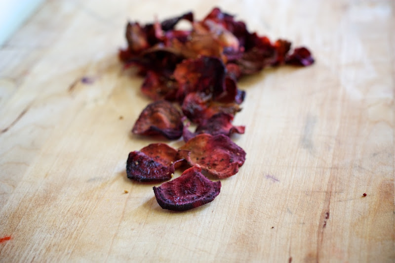 I know there are plenty of great recipes with beets but for my first beets of the season- I went with what I knew: chips. I mean, how can you go wrong with homemade chips?