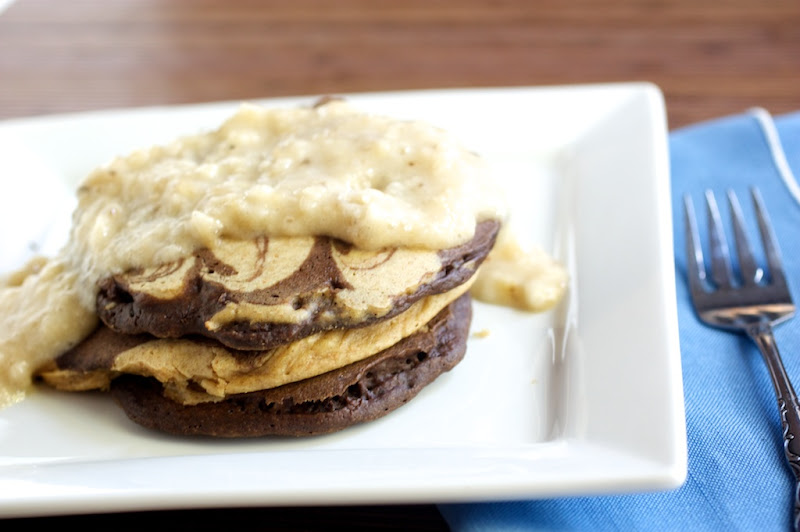 While both of these pancakes were delicious, something was still missing. So, I smothered both kinds of pancakes in a banana sauce.